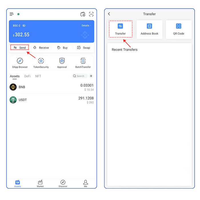 Entrada 1, haga clic en [Transferir] en la página Activos, haga clic en [Transferir].