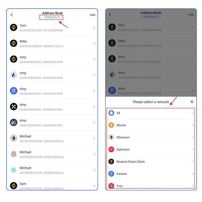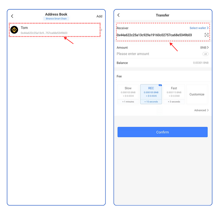 Recomendamos encarecidamente a los usuarios que realicen operaciones de transferencia con frecuencia que se acostumbren a utilizar el sistema de apodos de TokenPocket para transferir, ya que puede registrar la dirección del monedero que se utiliza a diario y se puede seleccionar directamente la dirección al transferir.