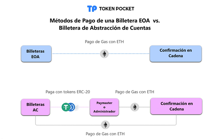 En el sistema de abstracción de cuenta, la cuenta de contrato inteligente creada por el usuario puede utilizar otros tokens ERC-20 para pagar la cuota de minero en su nombre. A nivel de contrato, habrá un “relé” para convertir los tokens ERC-20 en ETH nativos, empujando así la transacción en la cadena.